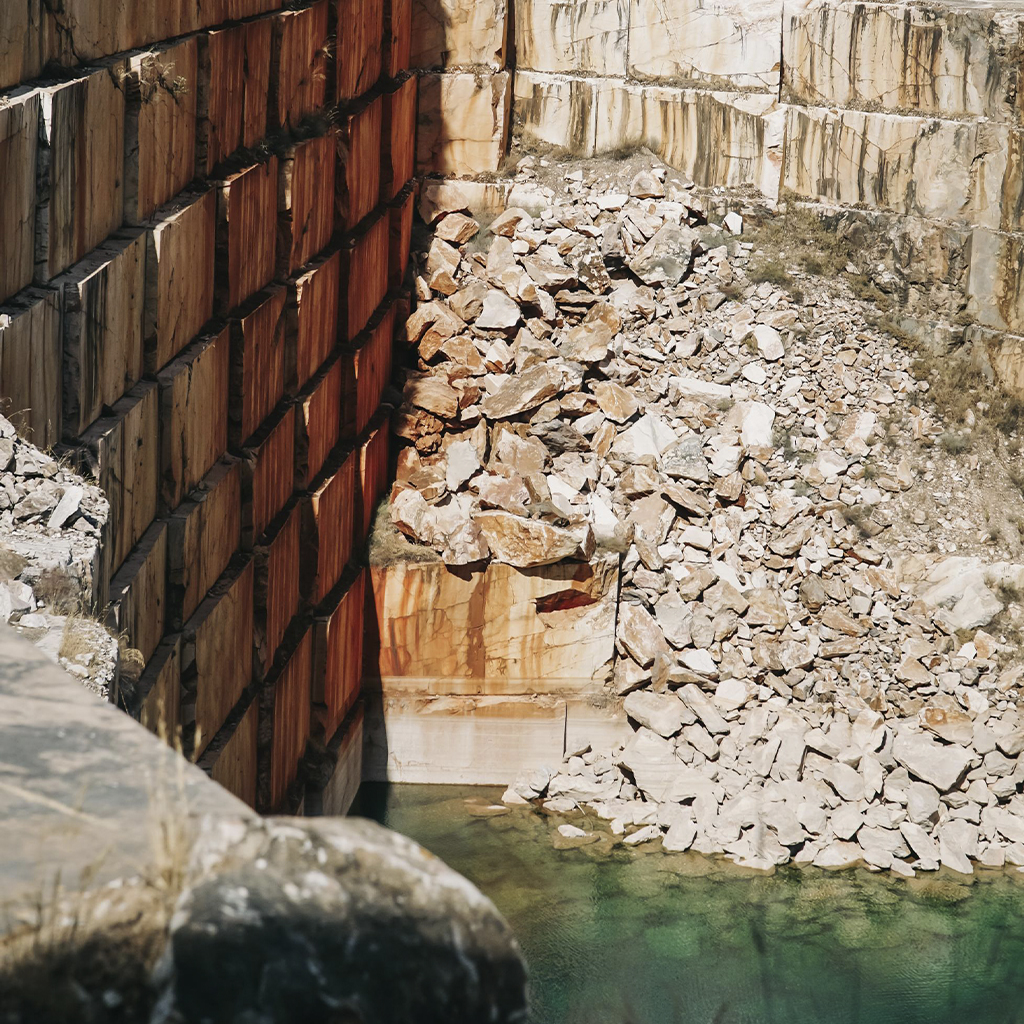 The so-called “Marble Triangle” of Alentejo, formed by the municipalities of Estremoz, Borba, and Vila Viçosa, is one of the most important marble deposits in Europe. This region, known since Roman times, remains a center of excellence in the extraction and transformation of this ornamental stone.